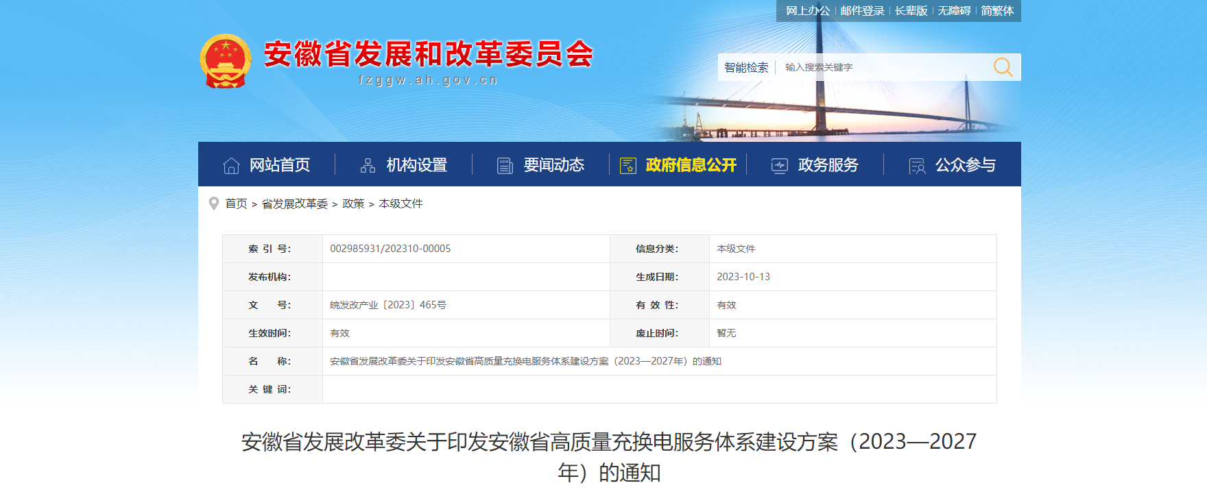 安徽省发展改革委关于印发《安徽省高质量充换电服务体系建设方案(2023—2027年)》的通知。