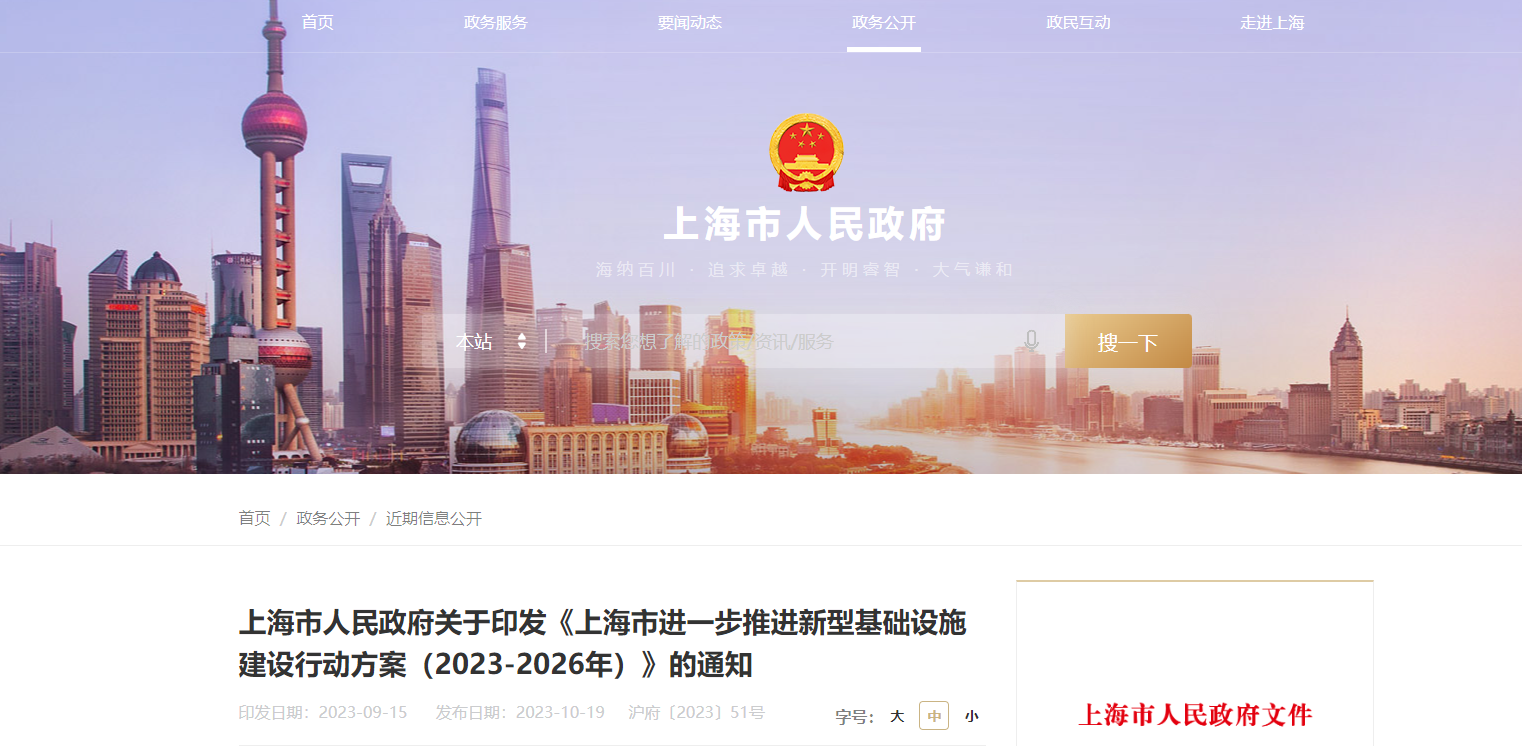 上海市人民政府关于印发《上海市进一步推进新型基础设施建设行动方案(2023-2026年)》的通知。